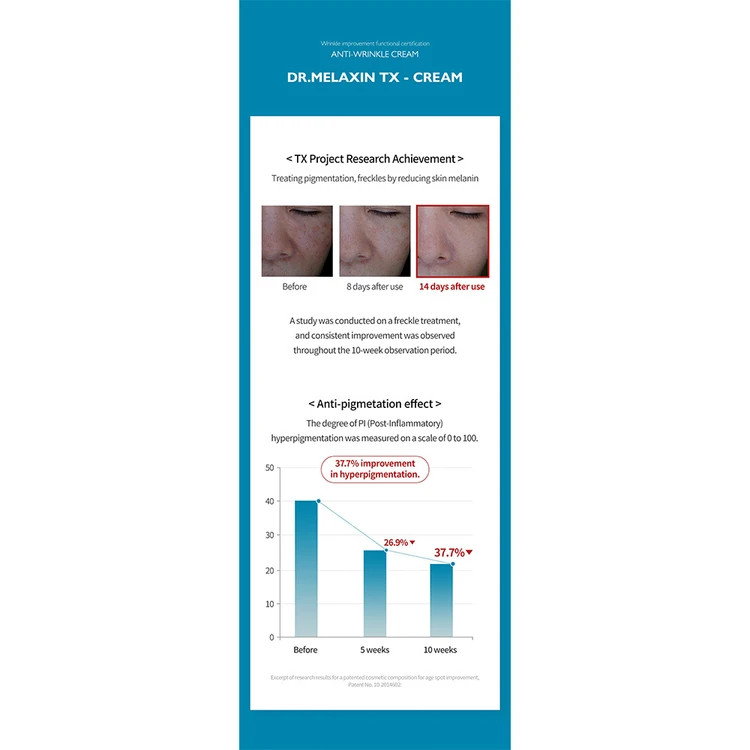 - کاهش ۳۷.۷٪ در میزان تیرگی و لک در مطالعات بالینی پس از ۱۰ هفته.