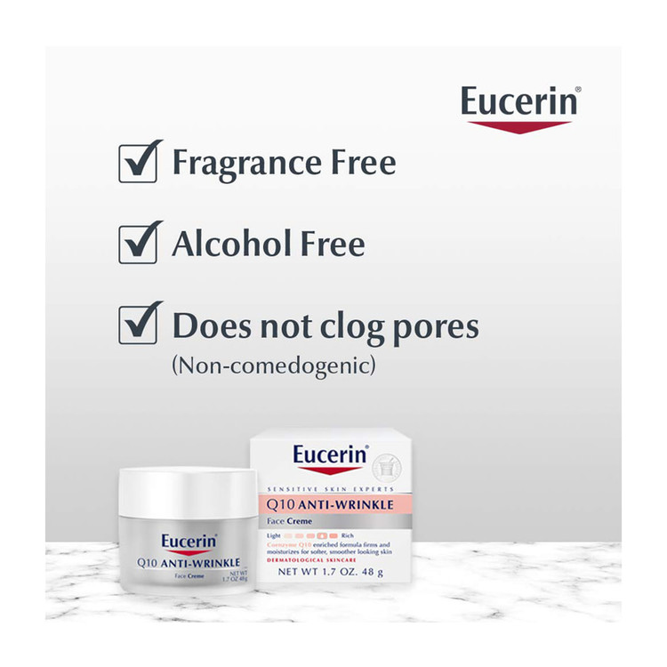 این کرم ضد چروک Eucerin Q10 فاقد عطر ، الکل و رنگ بوده است.